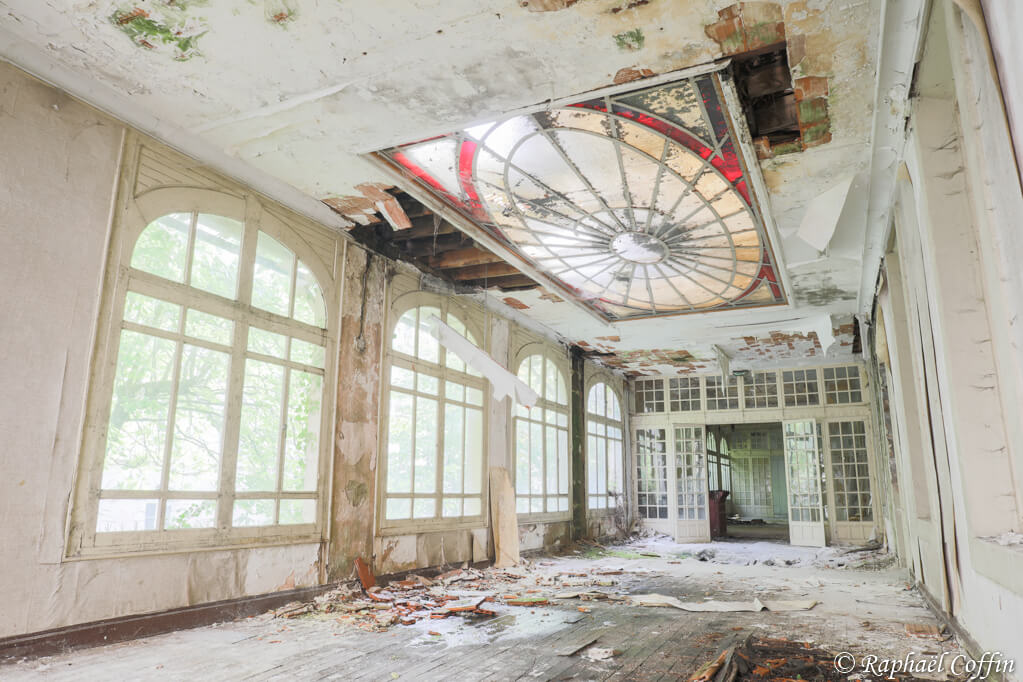 L’hôtel capitole est un ancien hôtel de luxe construit au début du XIXème. Il est maintenant à l’abandon depuis une cinquantaine d’années, suite au déclin de l’activité thermale de cette petite ville d’Auvergne. Le bâtiment est assez imposant avec ses trois étages, mais complètement vide. L’intérêt principal du lieu réside au rez-de-chaussée avec ses deux magnifiques verrières. Malheureusement le bâtiment commence sérieusement à montrer des signes de fatigue, les planchers s’affaissent et l’eau s’infiltre directement à l’intérieur de certaines pièces.