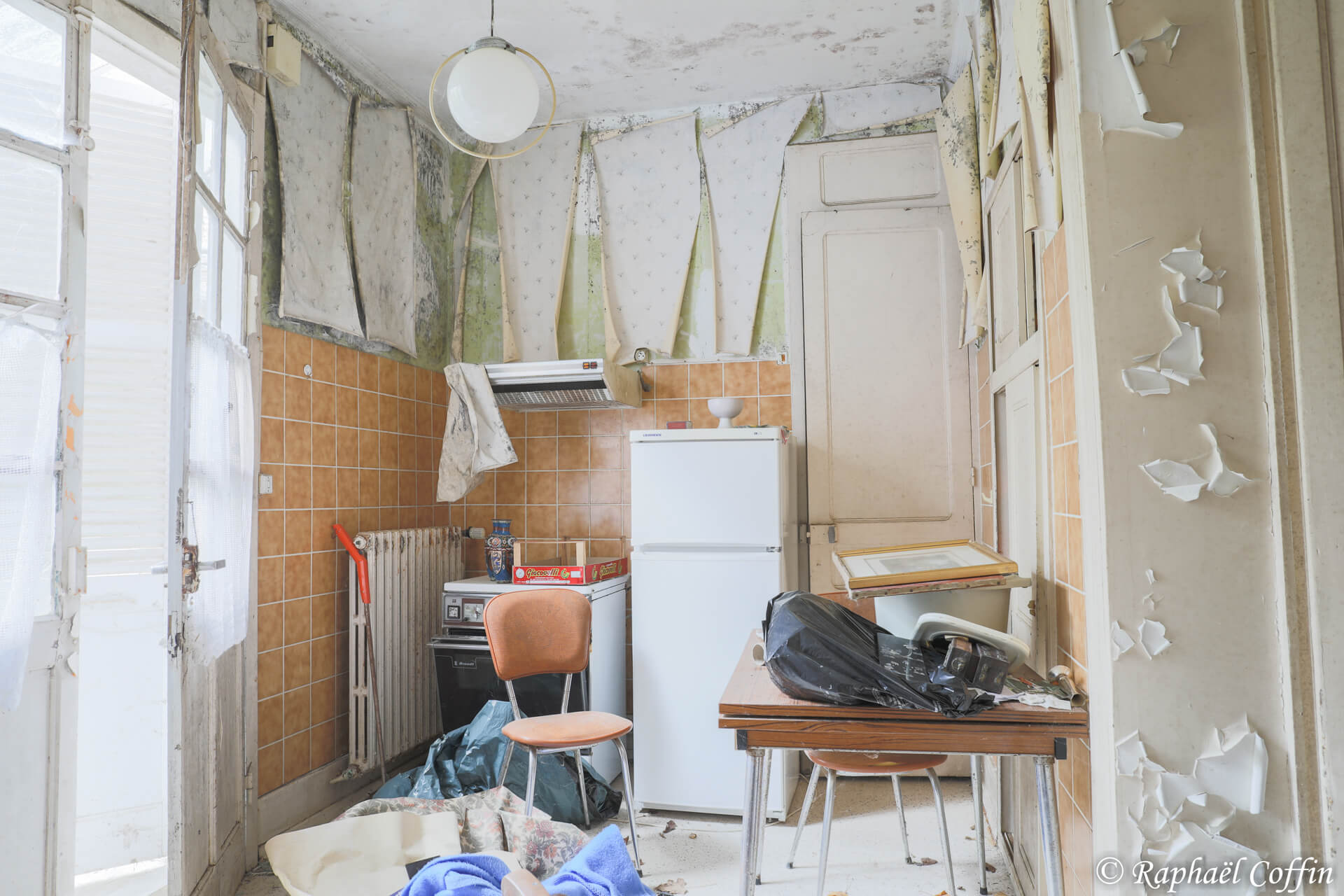 L’endroit est resté intact au fil du temps. Rien n’a changé, hormis l’apparition de moisissures et le papier peint qui se défraîchit progressivement avec les années.