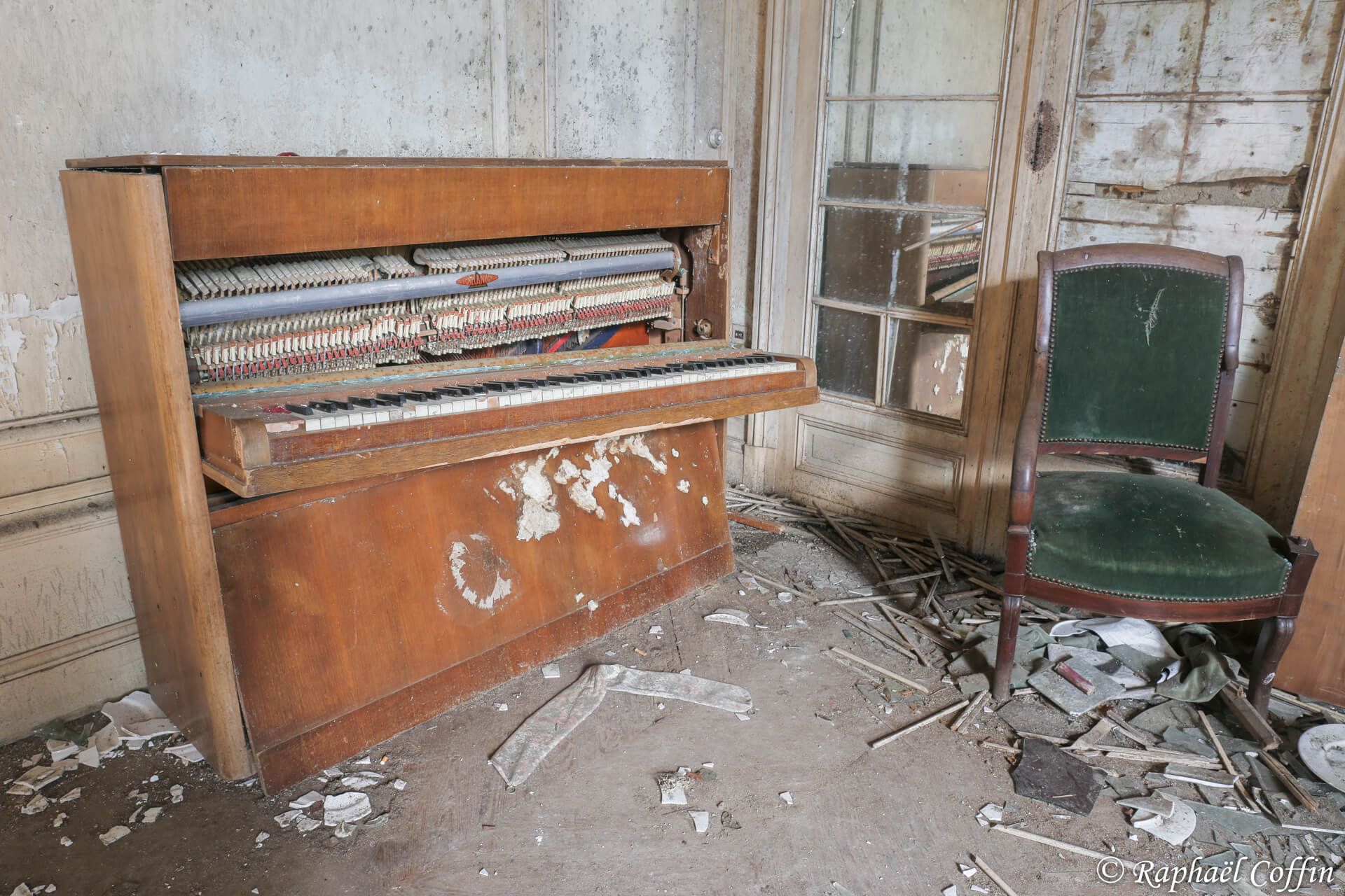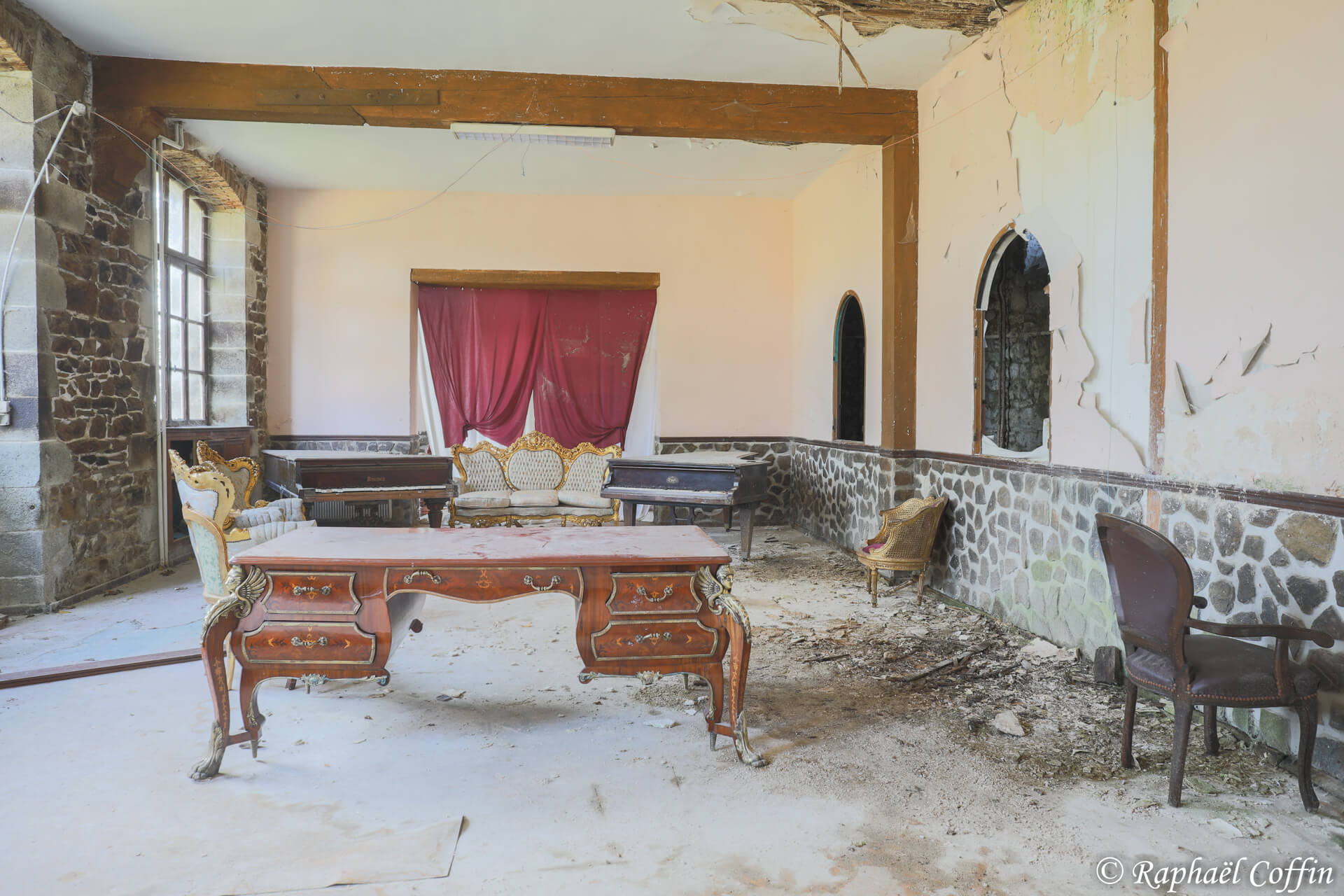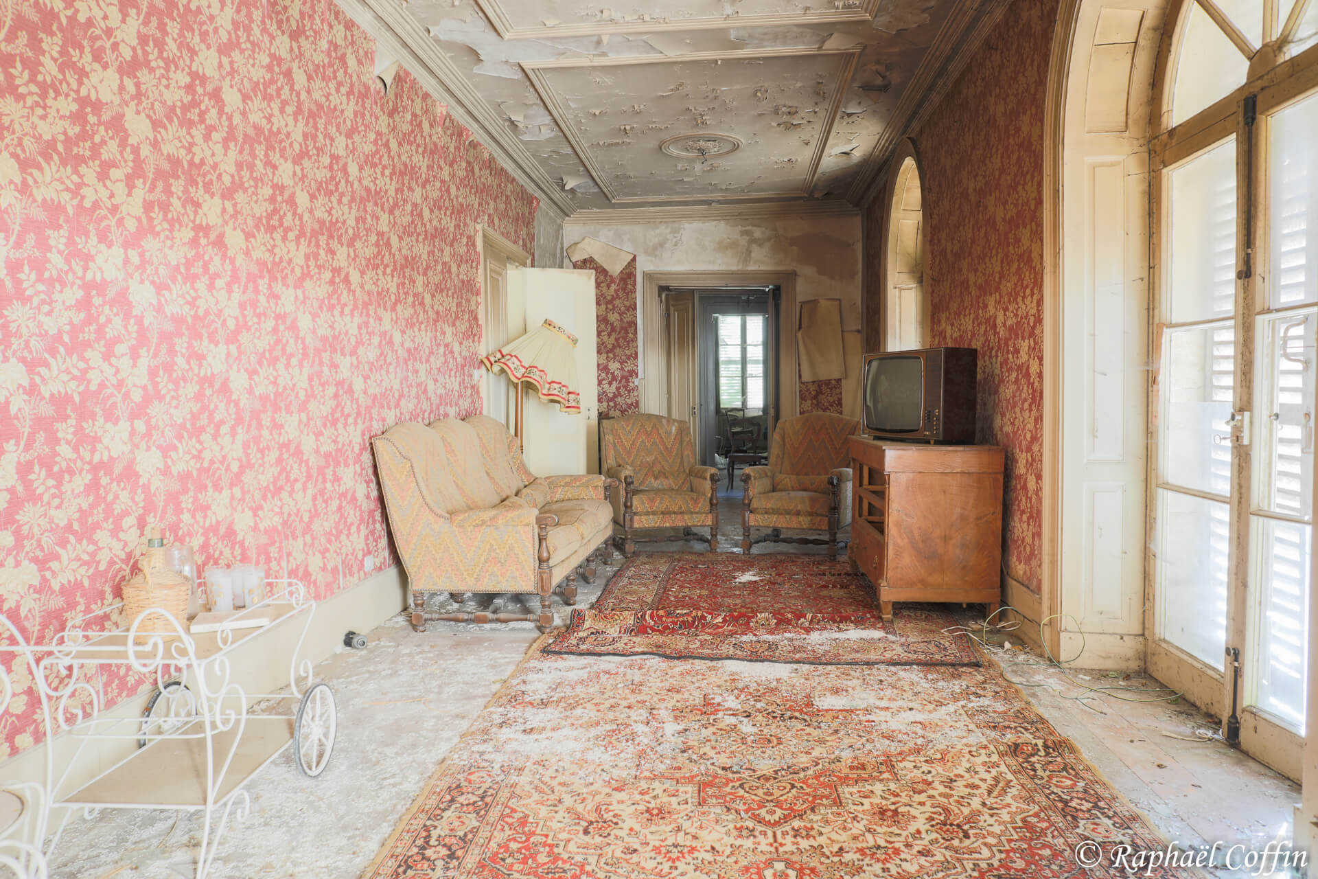 Les pièces, souvent encore meublées, donnent l’impression que leurs habitants ont quitté les lieux précipitamment, abandonnant derrière eux un témoignage poignant de leur quotidien. Les couloirs silencieux résonnent des échos de vies passées, tandis que les murs, parfois ornés de portraits anciens, semblent observer le visiteur avec un regard chargé de mystères.
